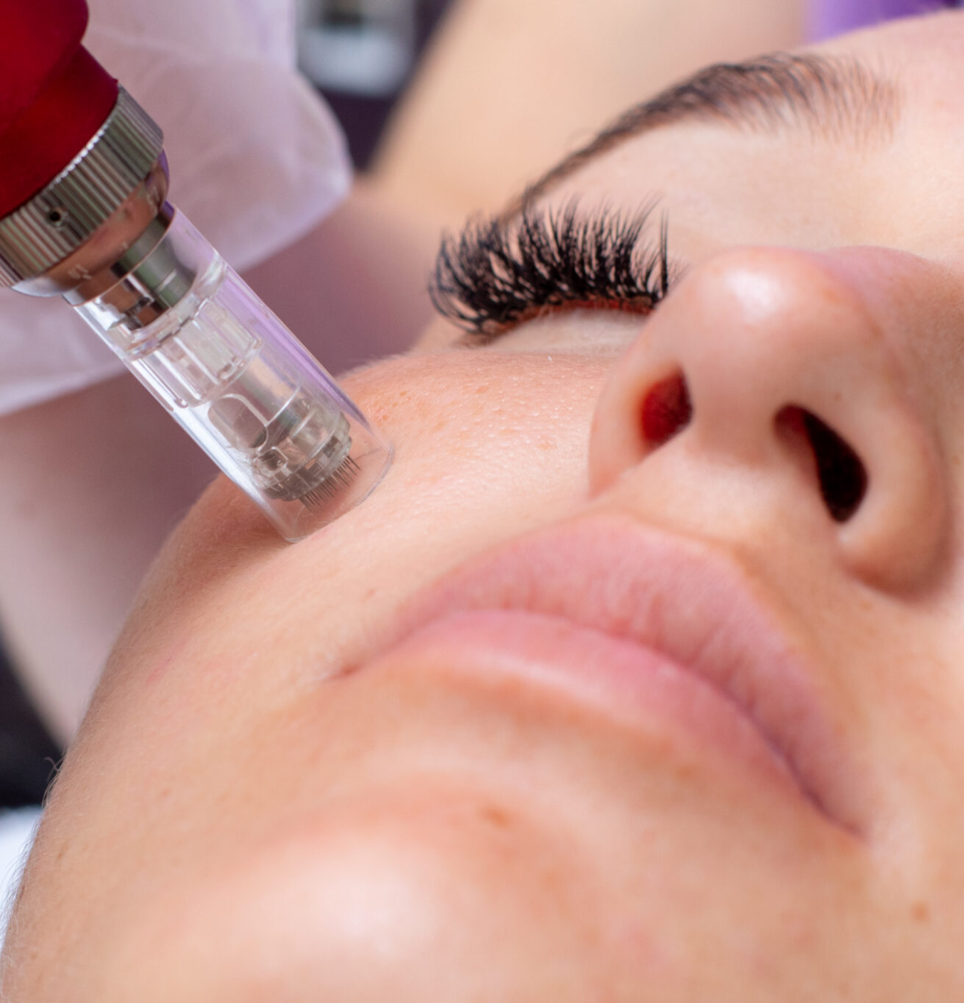 Combines microneedling and radiofrequency